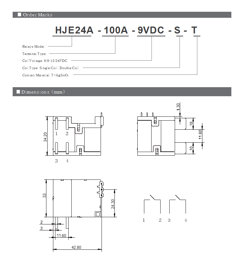 | Max. switching current | 100A |