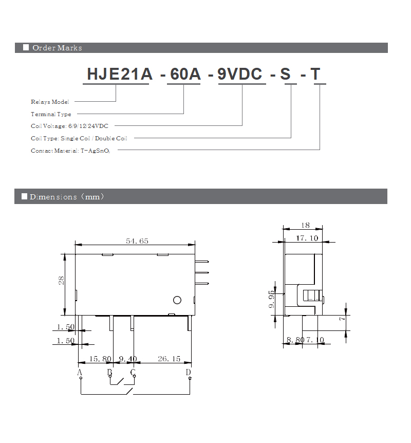 2、In order to maintain an “open” or “closed” state of the relay, the coil voltage should reach the rated voltage. The pulse width should be 5 times the operating time to ensure a proper change of state. Do not energize both T1, T2, and T3 at the same time on a dual coil, or energize the coil for longer than 1 minute (damage to the coil could occur).