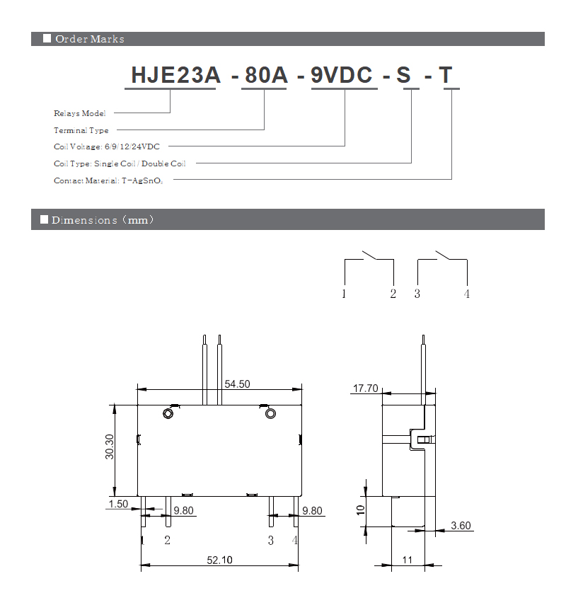 2、In order to maintain an “open” or “closed” state of the relay, the coil voltage should reach the rated voltage. The pulse width should be 5 times the operating time to ensure a proper change of state. Do not energize both T1, T,2 and T3 at the same time on a dual coil, or energize the coil for longer than 1 minute (damage to the coil could incur).
