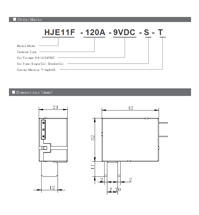 2、In order to maintain an “open” or “closed” state of the relay, the coil voltage should reach the rated voltage. The pulse width should be 5 times the operating time to ensure a proper change of state. Do not energize both T1, T,2 and T3 at the same time on a dual coil, or energize the coil for longer than 1 minute (damage to the coil could incur).