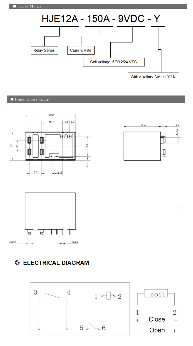 | Rated load | 150A/48VDC |